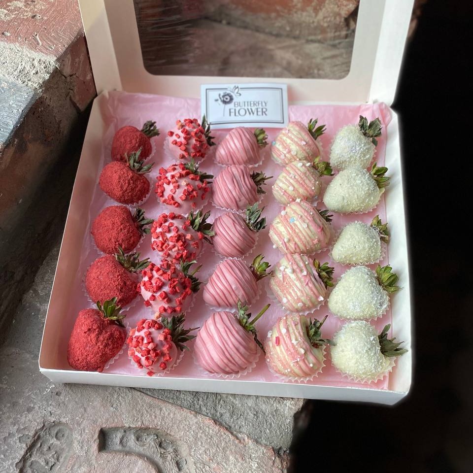 Композиция из клубники в шоколаде в дизайнерской коробке