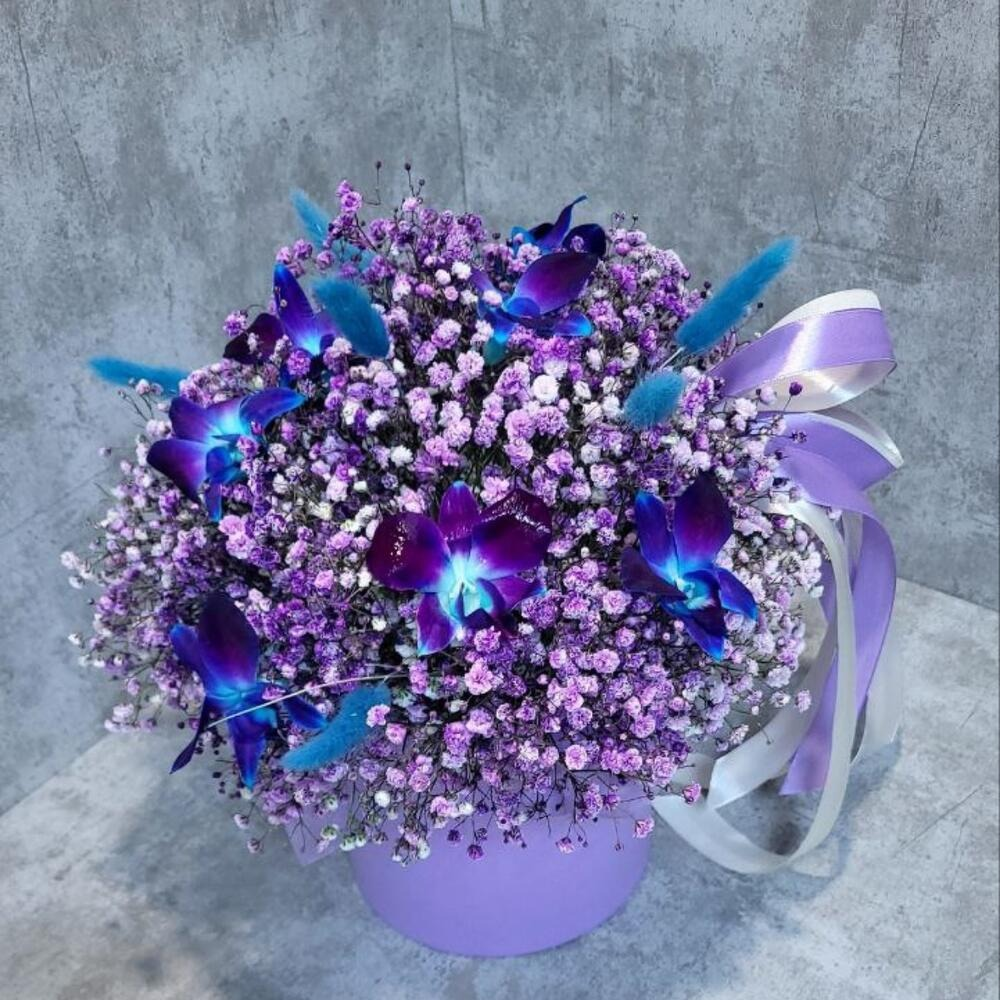 Сказочная и непредсказуемая композиция из синих орхидей и гипсофилы