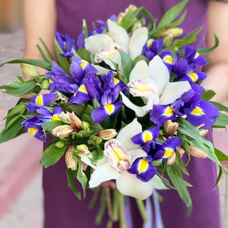 Букет «Мудрый совет» из ирисов и альстромерий