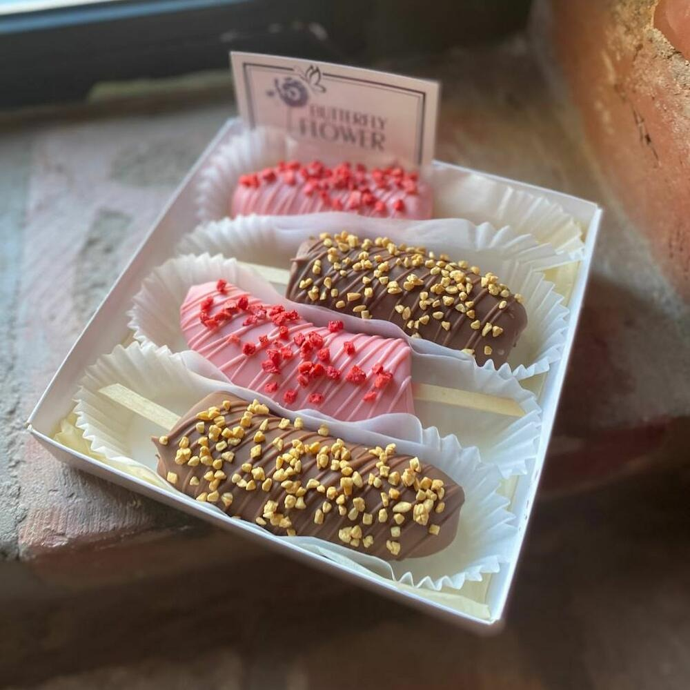 Композиция из бананов в шоколаде в дизайнерской коробке