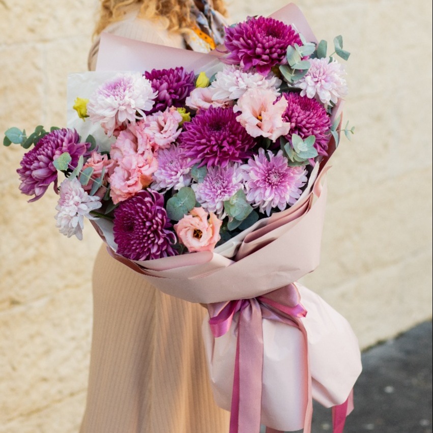 Букет «На Любом Расстоянии» из хризантем и эустом