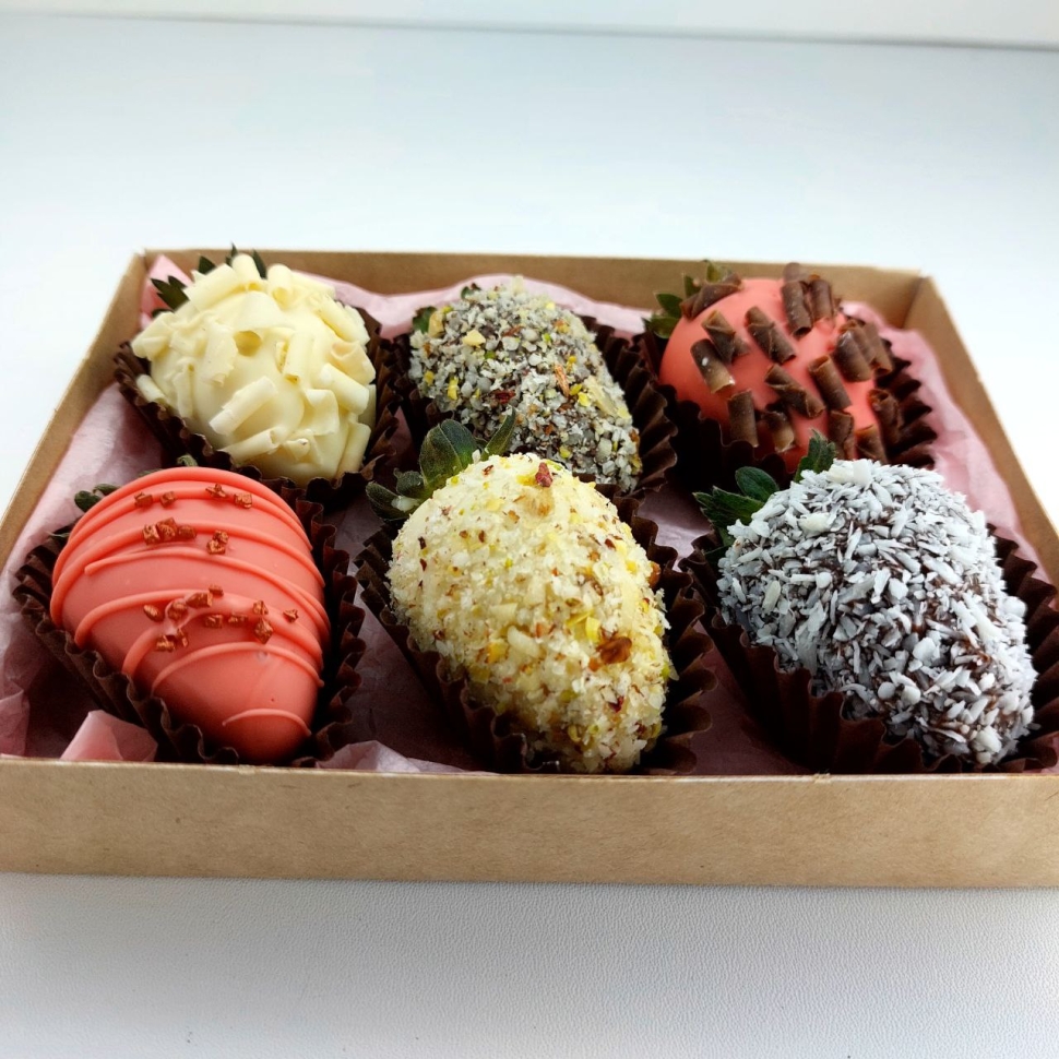 Набор 6 клубник в бельгийском шоколаде