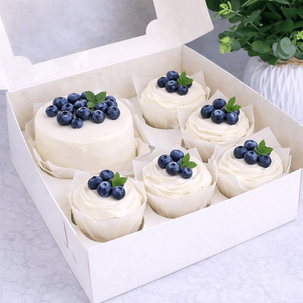 Набор бенто-торт и 8 капкейков с голубик