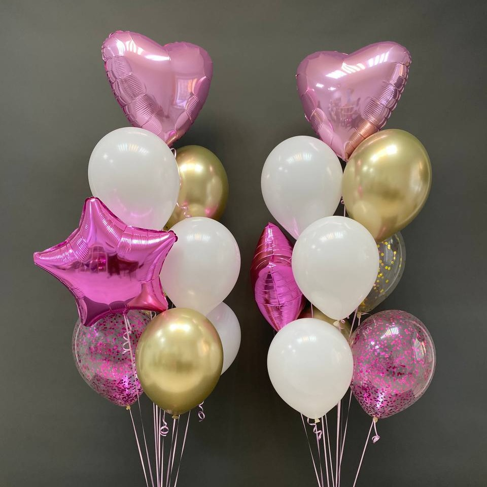 Состав набора: Грузик - 2 шт; Обработка всех шаров для долго полета - 1 шт; Гелий Фольга средняя - 4 шт; Гелий Шарик Латекс 12 д. - 10 шт; Гелий Шарик Латекс с наполнителем - 4 шт; В наборе можно откорректировать все по Вашему усмотрению только при условии наличия цветов в магазине!