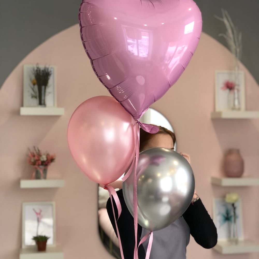 Фольгированный шар сердце и 2 латексных шара, обработанных клеем для продолжительного полёта!