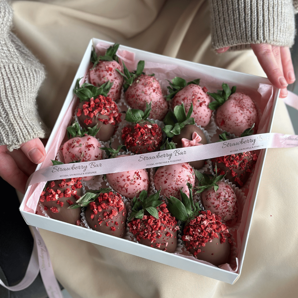 * Ягода, используемая в композициях считается по весу, ее количество может отличаться и зависит от калибра клубники. Состав: Отборная клубника, молочный шоколад, клубничный шоколад, сублимированн…