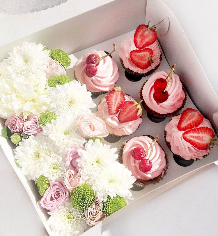 Идеальное сочетание цветочной композиции с нежнейшими, просто таящими во рту, капкейками со свежими ягодами. Цветочная композиция будет долго радовать вашего получателя, так как находится в специальном флористическом оазисе.