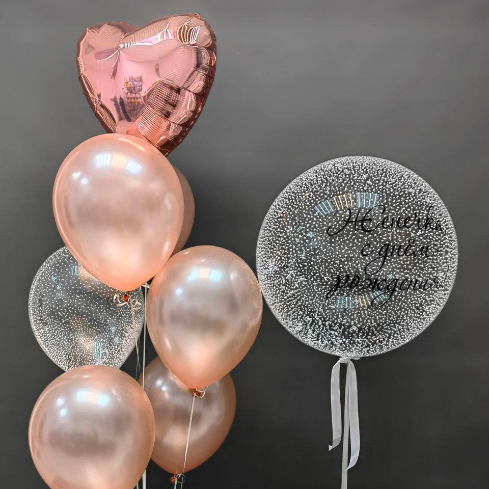 Состав набора: Грузик - 2 шт; Обработка всех шаров для долго полета - 1 шт; Гелий Фольга средняя - 1 шт; Гелий Шарик Латекс 12 д. - 5 шт; Гелий Шарик Латекс с наполнителем - 1 шт; Шар баблс с надписью и наполнением гелий - 1 шт; В наборе можно откорректировать все по Вашему усмотрению только при условии наличия цветов в магазине!