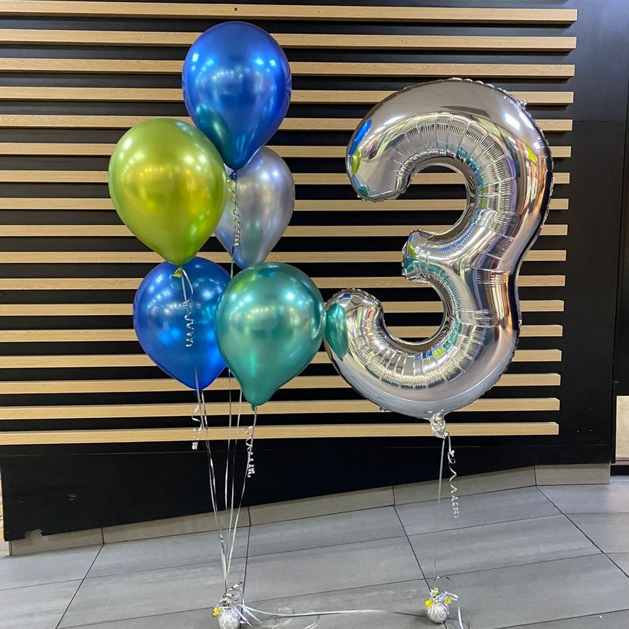 Состав набора: Грузик - 2 шт Обработка для долго полета - 1 шт Фольга цифра гелий - 1 шт Латекс 12 д. однотонный гелий - 5 шт В наборе можно откорректировать все по Вашему усмотрению, только при условии наличия цветов в магазине!
