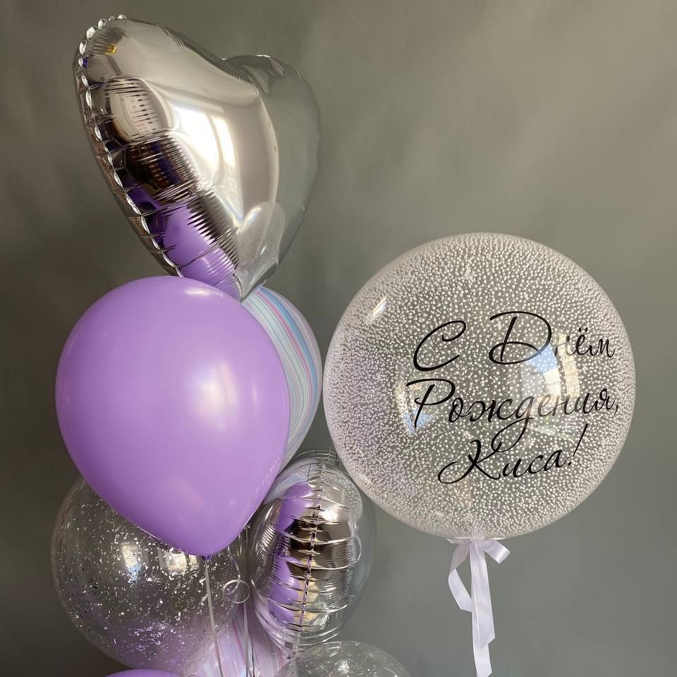 Шар баблс с надписью и наполнением гелий