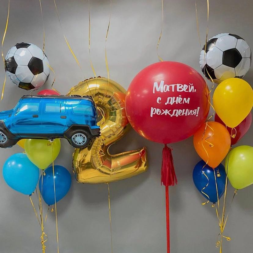 Состав набора: Грузик - 5 шт; Обработка всех шаров для долго полета - 1 шт; Надпись на шаре - 1 шт; Тассел кисти для шаров - 1 шт; Гелий Фольга огромная (фигура) - 1 шт; Гелий Фольга цифра - 1 шт; Гелий Фольга средняя - 2 шт; Гелий Шарик Латекс 32 д. - 1 шт; Гелий Шарик Латекс 12 д. - 10 шт; В наборе можно откорректировать все по Вашему усмотрению только при условии наличия цветов в магазине!