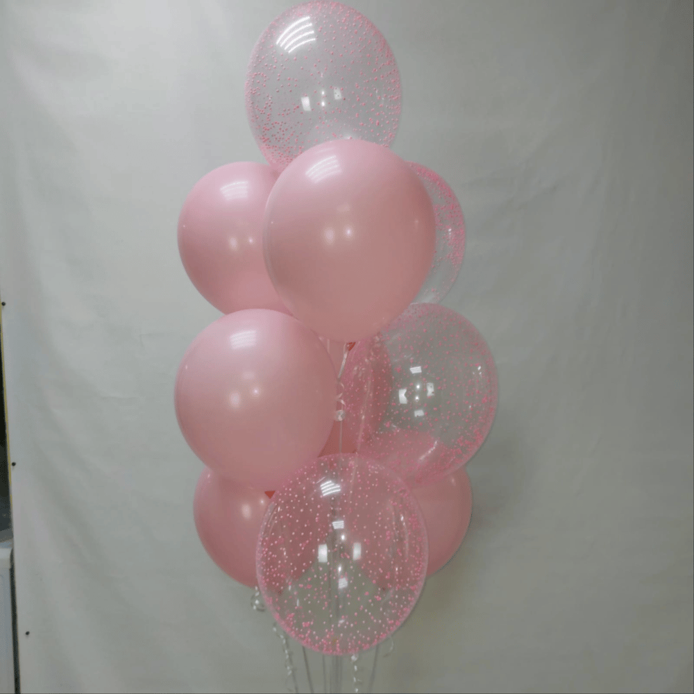 Букет из 10 шаров на грузике 6 шаров латексных розовых 4 шара Кристал с наполнением розовые шарики
