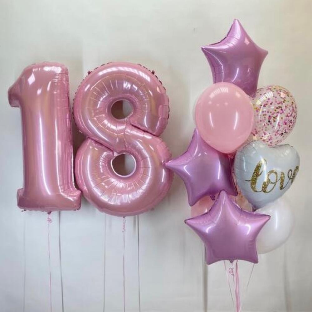 Набор шаров для девушки из 2 цифр и 10 шаров. Цифры могут быть другие, по возрасту.