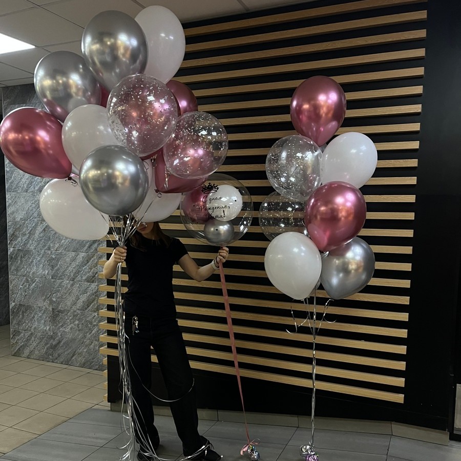 Состав набора: Грузик - 2 шт Обработка для долго полета - 1 шт Латекс 12 д. однотонный гелий - 28 шт Латекс 12 д. с наполнителем гелий - 5 шт Шар баблс с надписью и наполнением гелий - 1 шт В наборе можно откорректировать все по Вашему усмотрению, только при условии наличия цветов в магазине!