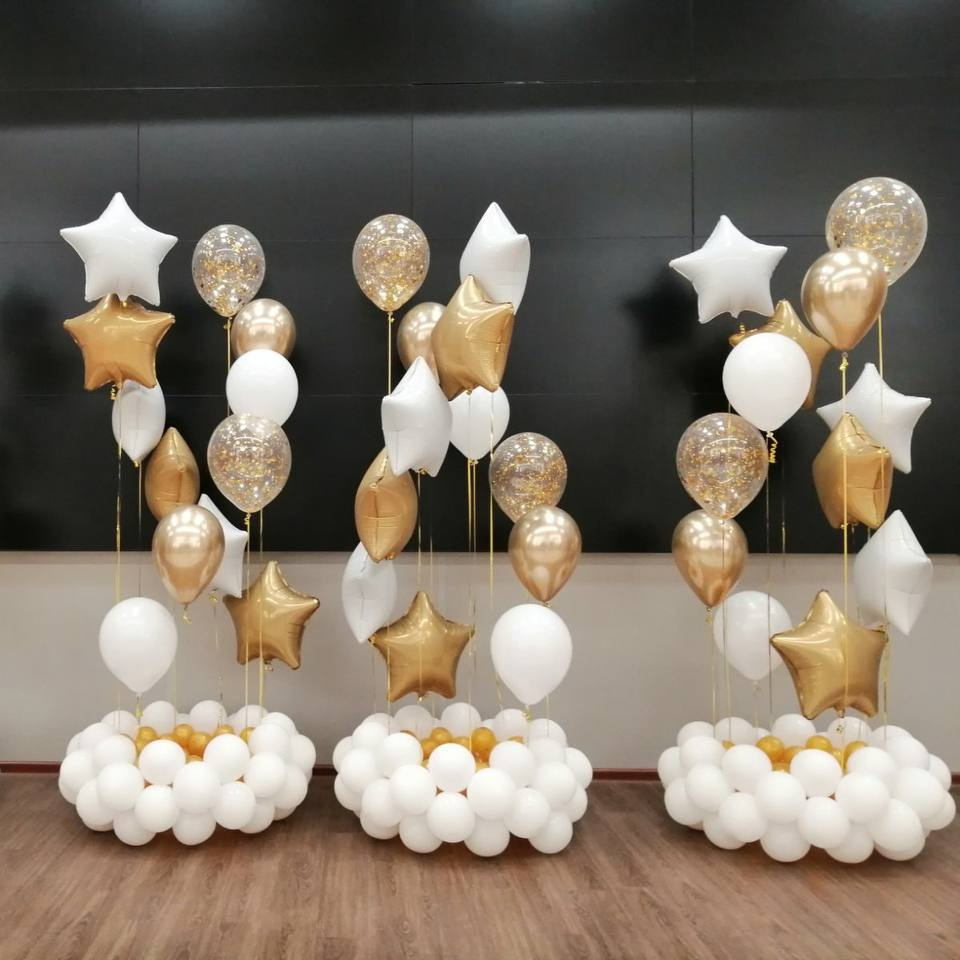 Грузик - 16 шт; Обработка всех шаров для долго полета - 1 шт; Гелий Фольга средняя - 24 шт; Гелий Шарик Латекс 12 д. - 16 шт; Гелий Шарик Латекс с наполнителем - 8 шт; Латекс 12 д. однотонный воздух - 320 шт; Сборка шаров 3 сложность - 4 шт; В наборе можно откорректировать все по Вашему усмотрению только при условии наличия цветов в магазине!