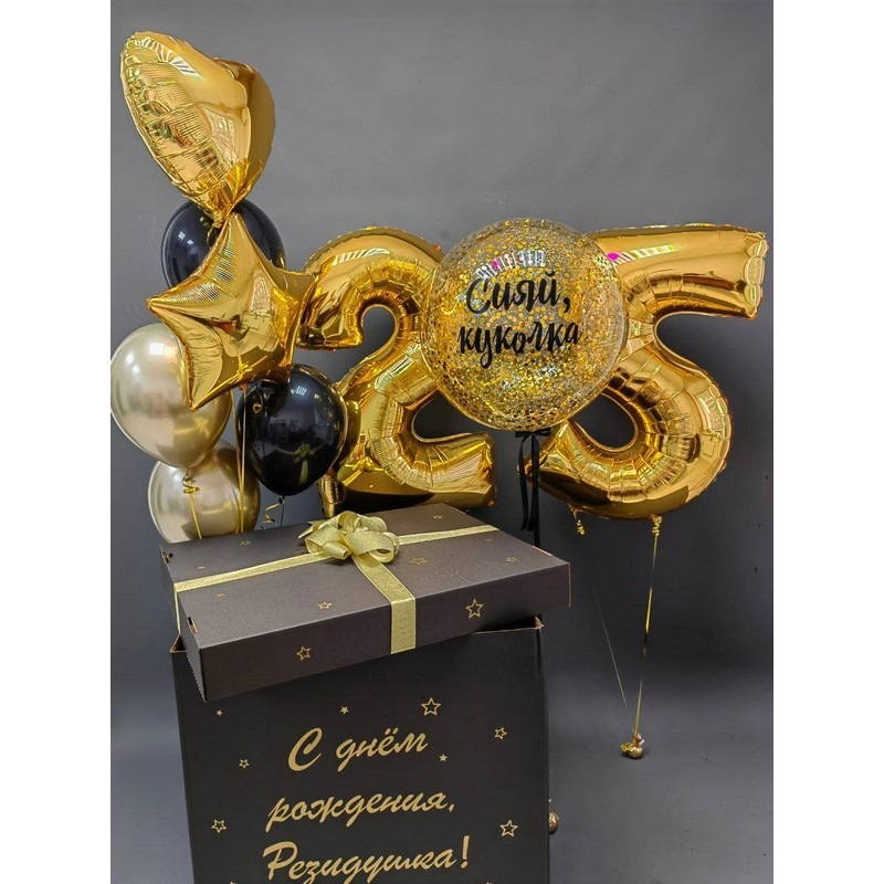 Грузик - 4 шт; Обработка всех шаров для долго полета - 1 шт; Коробка сюрприз - 1 шт; Гелий Фольга цифра - 2 шт; Гелий Фольга средняя - 2 шт; Гелий Шарик Латекс 12 д. - 4 шт; Шар баблс с на...