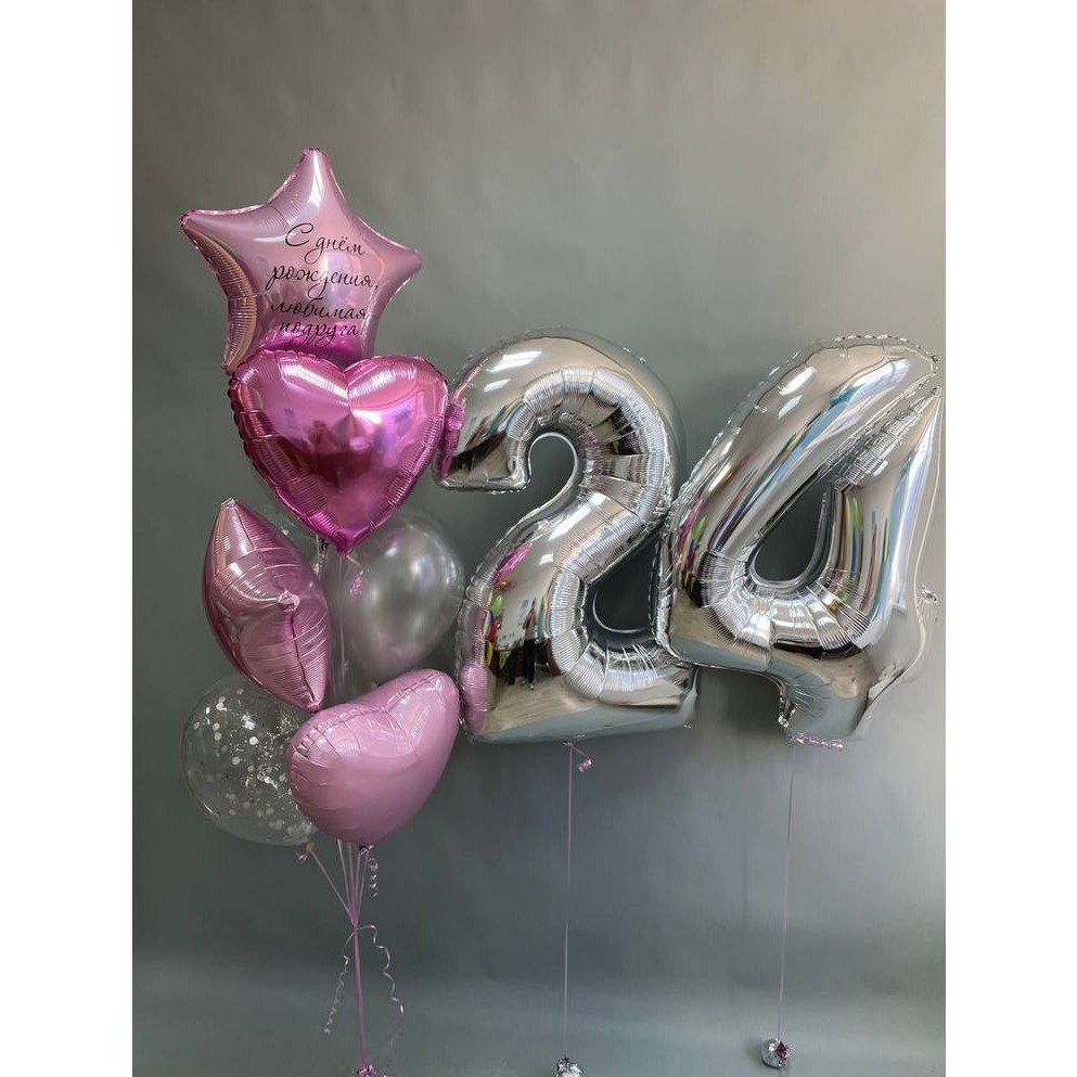 Грузик - 3 шт; Обработка всех шаров для долго полета - 1 шт; Надпись на шаре - 1 шт; Гелий Фольга цифра - 2 шт; Гелий Фольга средняя - 4 шт; Гелий Шарик Латекс 12 д. - 4 шт; Гелий Шарик Ла...