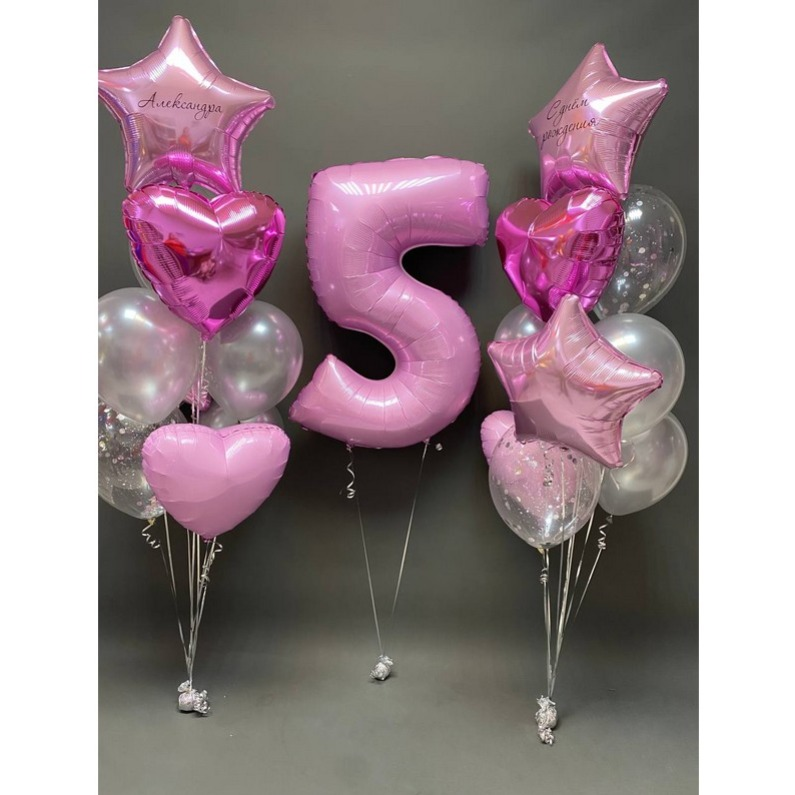 Набор шаров с гелием 400 -с цифрой 5