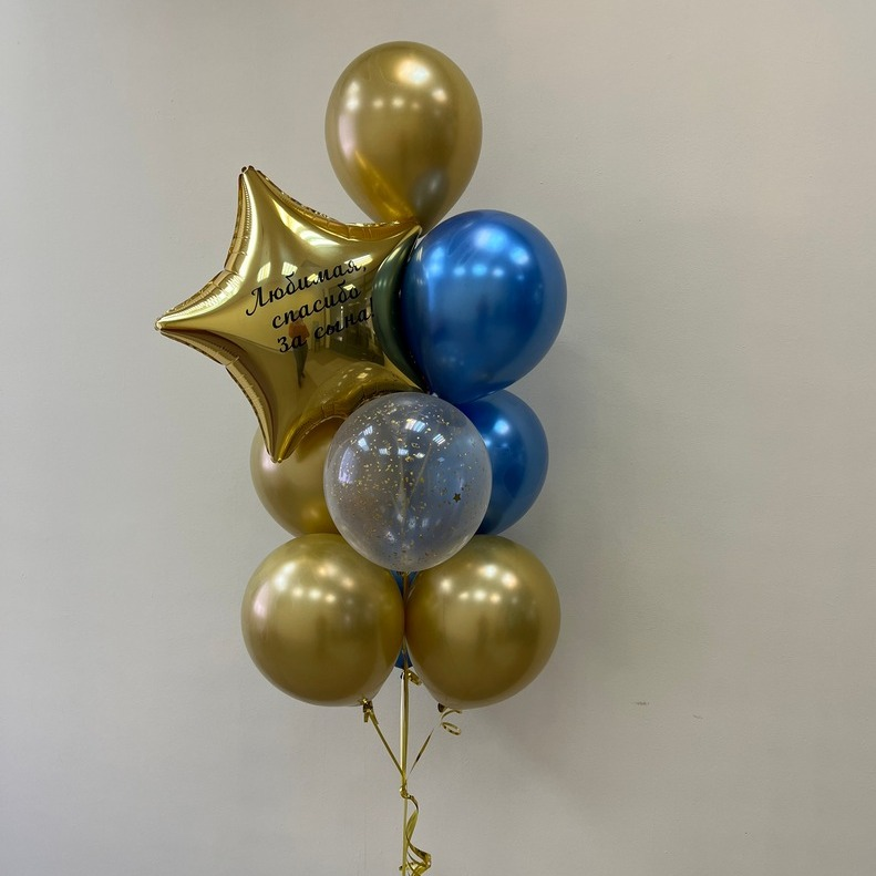 Грузик - 1 шт; Обработка всех шаров для долго полета - 1 шт; Надпись на шаре - 1 шт; Гелий Фольга средняя - 1 шт; Гелий Шарик Латекс 12 д. - 8 шт; Гелий Шарик Латекс с наполнителем - 1 шт; ...