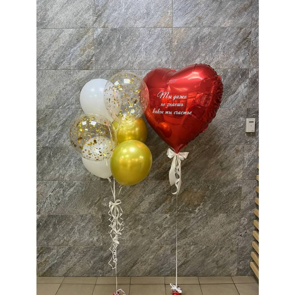 Грузик - 2 шт; Обработка всех шаров для долго полета - 1 шт; Надпись на шаре - 1 шт; Гелий Фольга огромная (фигура) - 1 шт; Гелий Шарик Латекс 12 д. - 4 шт; Гелий Шарик Латекс с наполнителем ...