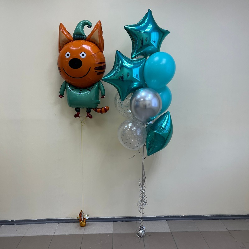 Грузик - 2 шт Обработка для долго полета - 1 шт Гелий фольгированный шар Foil Ballon - 1 шт Фольга средняя гелий - 3 шт Латекс 12 д. однотонный гелий - 5 шт Латекс 12 д. с наполнителем гелий - 2 шт В наборе можно откорректировать все по Вашему усмотрению только при условии наличия цветов в магазине!