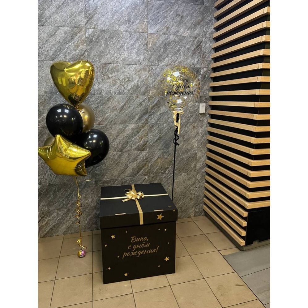Грузик - 2 шт; Обработка всех шаров для долго полета - 1 шт; Коробка сюрприз - 1 шт; Гелий Фольга средняя - 2 шт; Гелий Шарик Латекс 12 д. - 5 шт; Шар баблс с надписью и наполнением гелий - ...