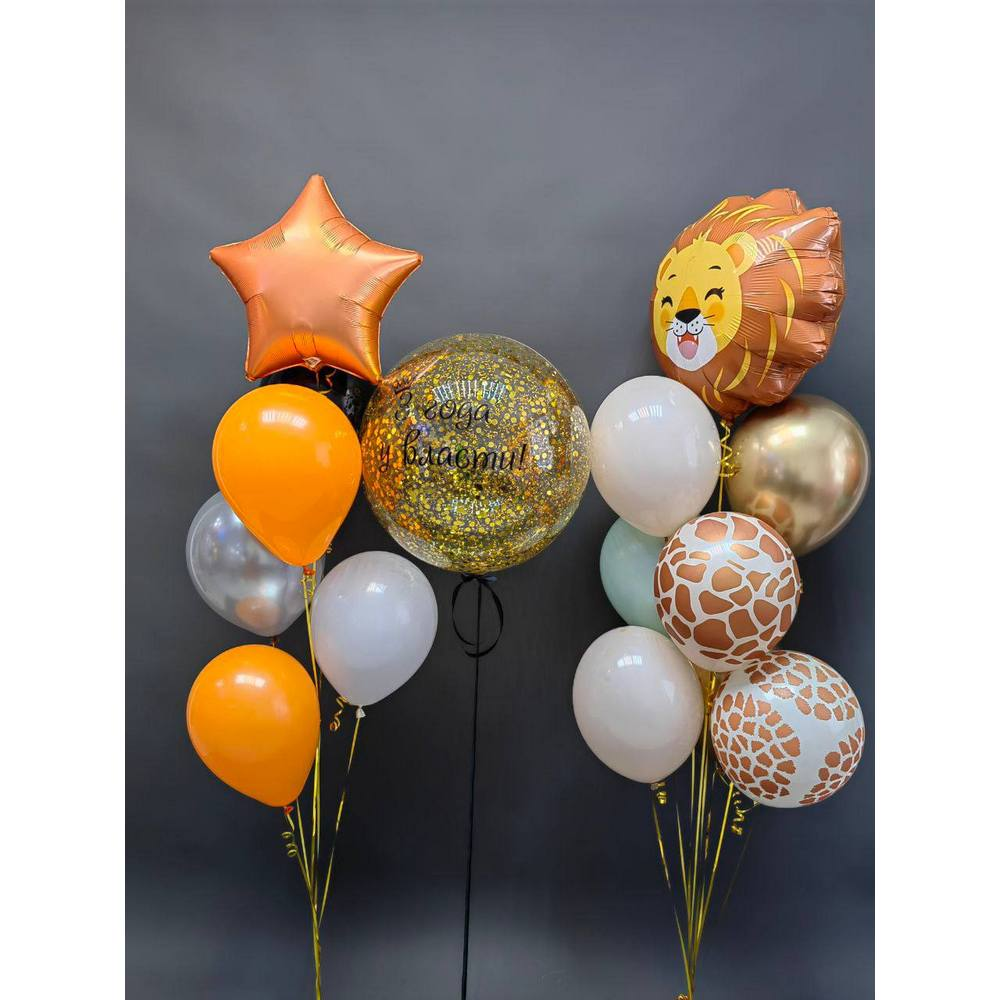 Грузик - 3 шт; Обработка всех шаров для долго полета - 1 шт; Гелий Фольга огромная (фигура) - 1 шт; Гелий Фольга средняя - 1 шт; Гелий Шарик Латекс 12 д. - 10 шт; Гелий Шарик Латекс с рисунком - 2 шт; Шар баблс с надписью и наполнением гелий - 1 шт; В наборе можно откорректировать все по Вашему усмотрению только при условии наличия цветов в магазине!