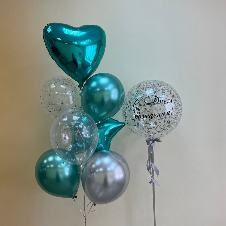 Грузик - 2 шт; Обработка всех шаров для долго полета - 1 шт; Гелий Фольга средняя - 2 шт; Гелий Шарик Латекс 12 д. - 3 шт; Гелий Шарик Латекс с наполнителем - 2 шт; Шар баблс с надписью и наполнением гелий - 1 шт; В наборе можно откорректировать все по Вашему усмотрению только при условии наличия цветов в магазине!