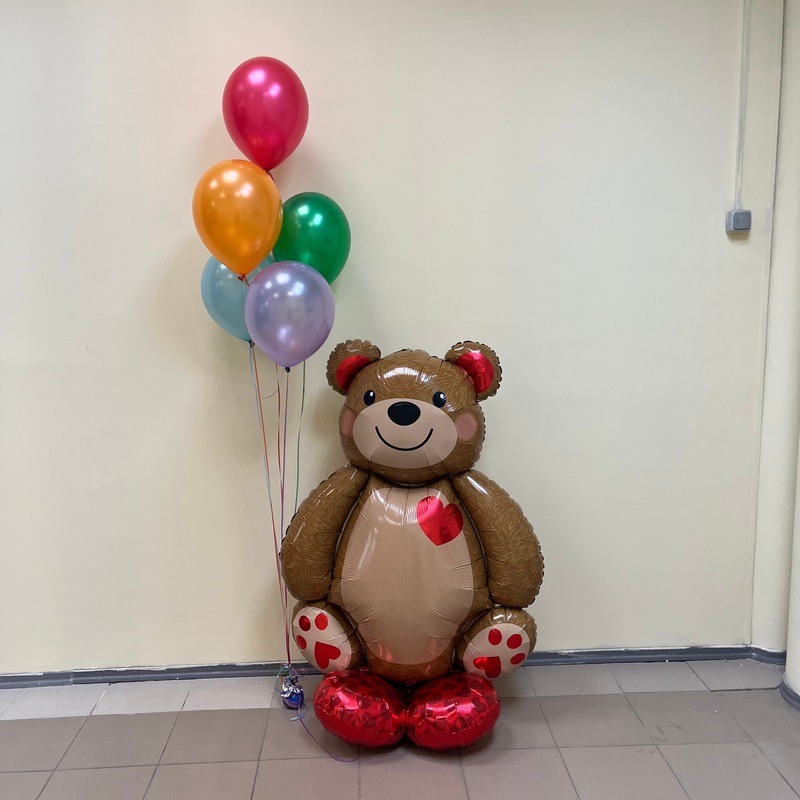 Грузик - 1 шт; Обработка всех шаров для долго полета - 1 шт; Гелий Шарик Латекс 12 д. - 5 шт; Ходячая фигура - 1 шт; В наборе можно откорректировать все по Вашему усмотрению только при условии наличия цветов в магазине!