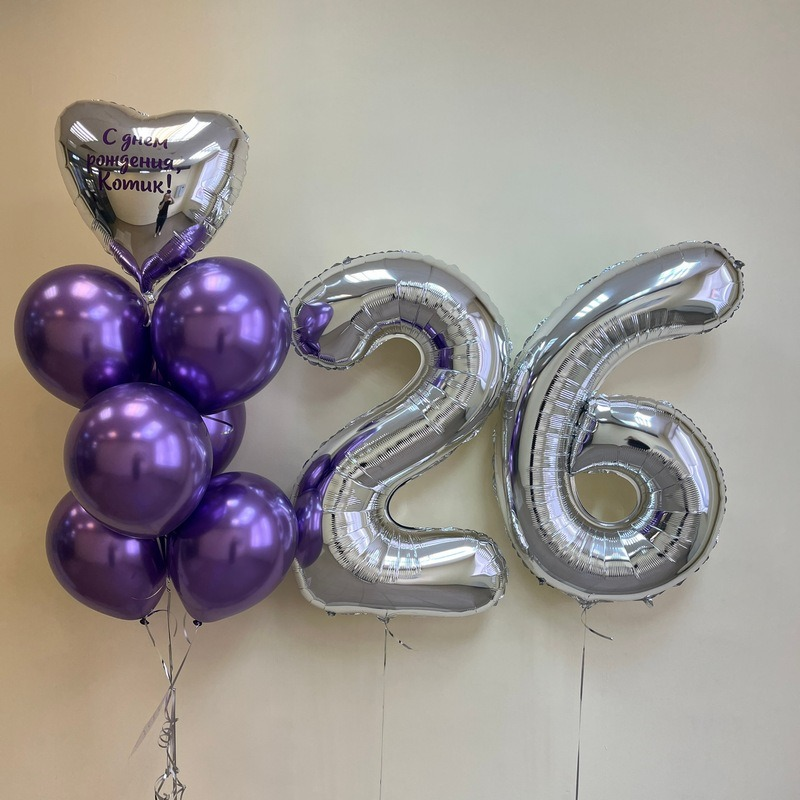 Грузик - 3 шт; Обработка всех шаров для долго полета - 1 шт; Надпись на шаре - 1 шт; Гелий Фольга цифра - 2 шт; Гелий Фольга средняя - 1 шт; Гелий Шарик Латекс 12 д. - 6 шт; В наборе можно...