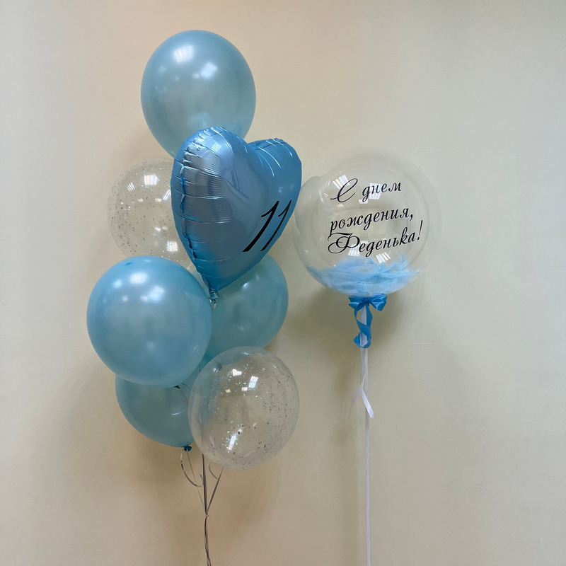 Грузик - 2 шт; Обработка всех шаров для долго полета - 1 шт; Надпись на шаре - 1 шт; Гелий Фольга средняя - 1 шт; Гелий Шарик Латекс 12 д. - 4 шт; Гелий Шарик Латекс с наполнителем - 2 шт; ...