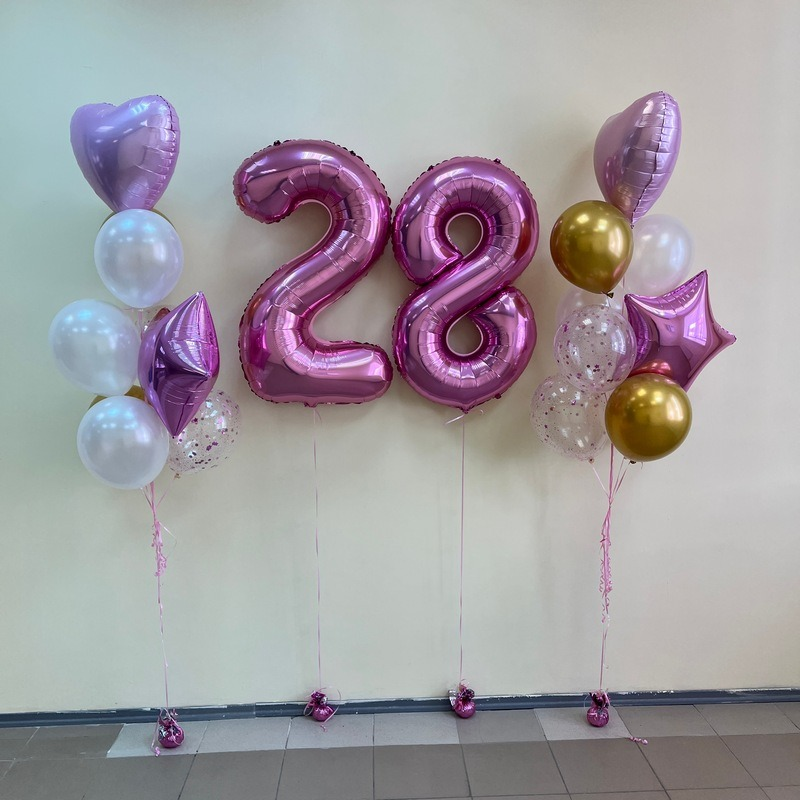 Грузик - 4 шт; Обработка всех шаров для долго полета - 1 шт; Гелий Фольга цифра - 2 шт; Гелий Фольга средняя - 4 шт; Гелий Шарик Латекс 12 д. - 10 шт; Гелий Шарик Латекс с наполнителем - 4...