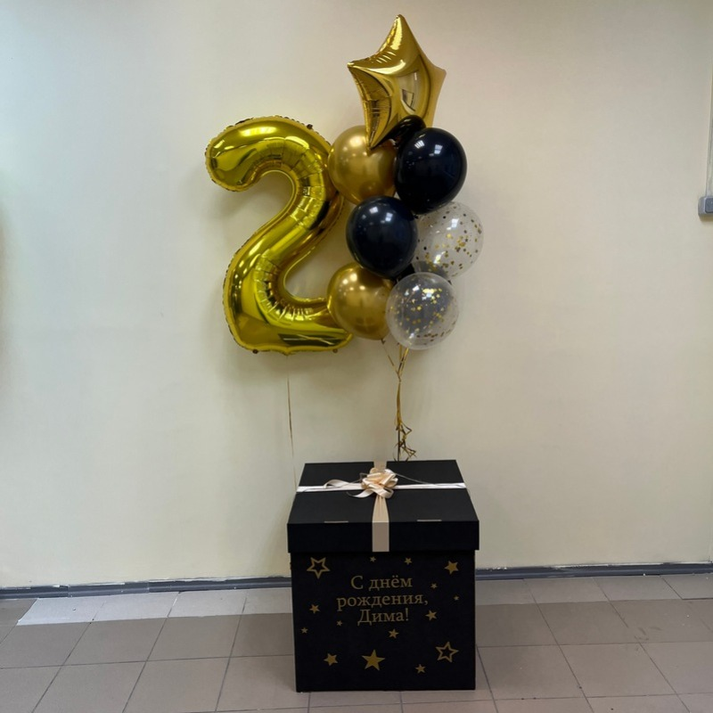 Грузик - 2 шт; Обработка всех шаров для долго полета - 1 шт; Коробка сюрприз - 1 шт; Гелий Фольга цифра - 1 шт; Гелий Фольга средняя - 1 шт; Гелий Шарик Латекс 12 д. - 6 шт; Гелий Шарик Ла...