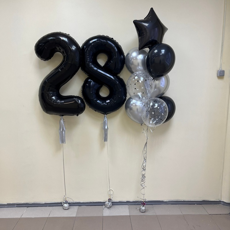 Грузик - 3 шт; Обработка всех шаров для долго полета - 1 шт; Тассел кисти для шаров (дождик) - 2 шт; Гелий Фольга цифра - 2 шт; Гелий Фольга средняя - 1 шт; Гелий Шарик Латекс 12 д. - 5 шт; Гелий Шарик Латекс с наполнителем - 2 шт; В наборе можно откорректировать все по Вашему усмотрению только при условии наличия цветов в магазине!