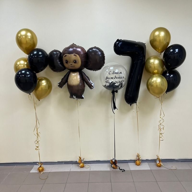 Грузик - 5 шт; Обработка всех шаров для долго полета - 1 шт; Гелий фольгированный шар Foil Ballon - 1 шт; Гелий Фольга цифра - 1 шт; Гелий Шарик Латекс 12 д. - 10 шт; Шар баблс с надписью и ...