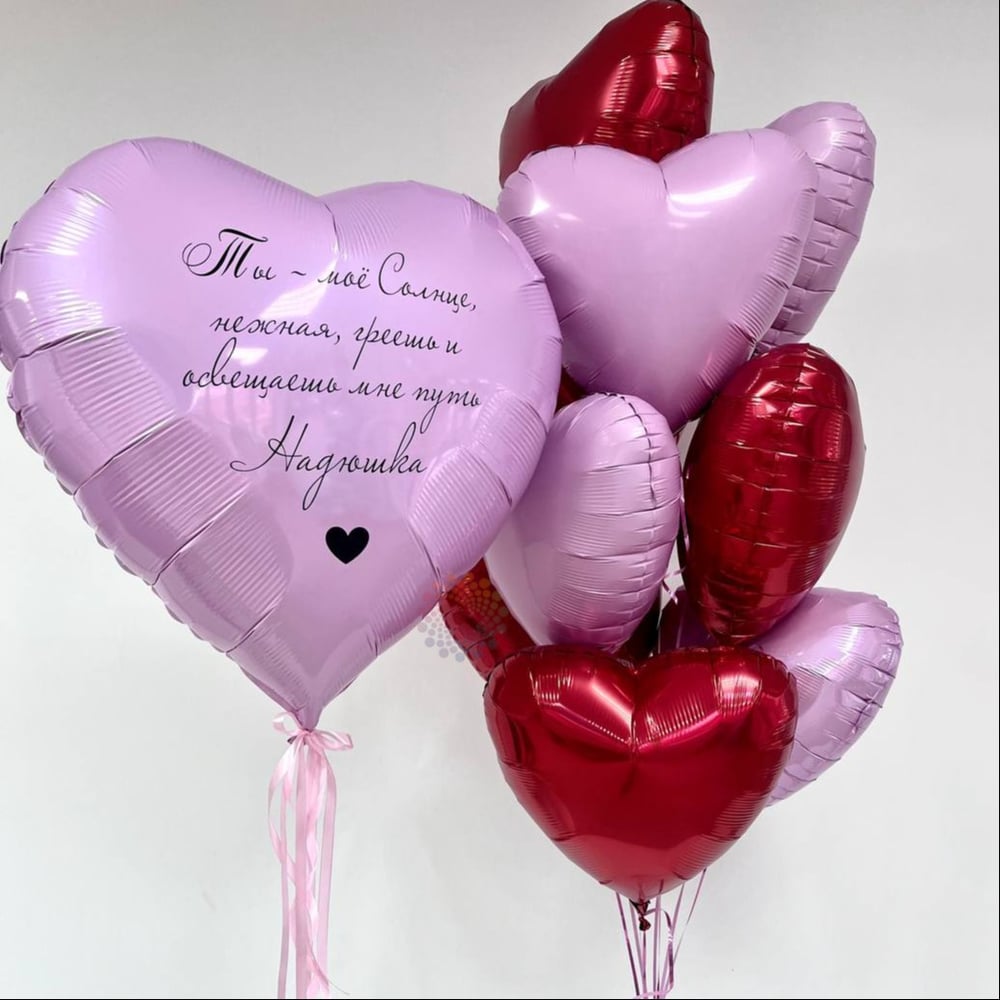 Создайте незабываемый момент с нашим эксклюзивным набором воздушных шаров, который станет символом ваших чувств и романтики. Этот набор идеально подходит для признания в любви, дня рождения или любого другого важного события. • 9 шаров-сердец: В набор входят 9 великолепных шаров в форме сердец размером 45 см. Красные и розовые сердца символизируют любовь, страсть и нежность, создавая атмосферу тепла и уюта. Эти яркие и стильные шары прекрасно дополнят любое торжество, придавая ему романтичный настрой. • 1 гигантское сердце: В дополнение к шарам в набор входит одно гигантское сердце розового цвета с вашей индивидуальной надписью. Это сердце станет настоящим акцентом вашего признания, позволяя выразить ваши чувства словами. Вы можете выбрать любое сообщение, которое сделает момент еще более личным и значимым. Не упустите возможность сделать ваше признание в любви по-настоящему особенным! Закажите наш набор воздушных шаров в Новосибирске и подарите своему любимому человеку момент счастья, который останется в памяти навсегда. Пусть ваши чувства взлетают вместе с шарами!