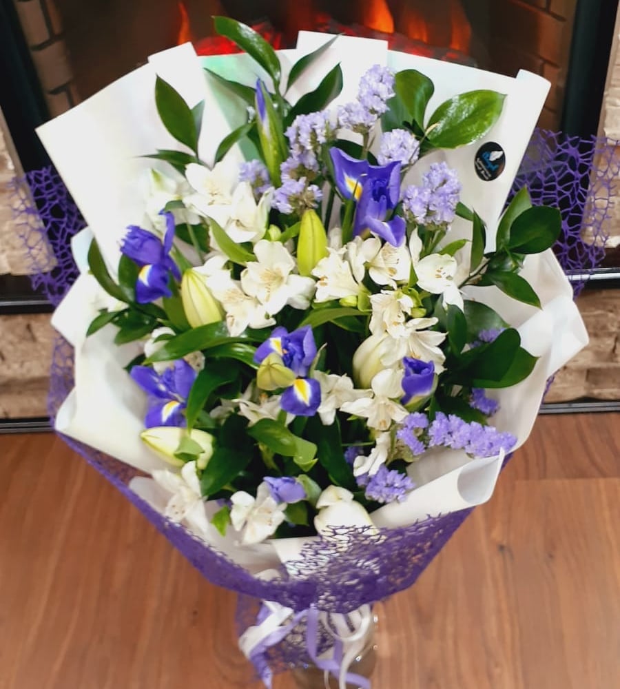 Букет «Небеса в ладошках» из ирисов и альстромерий