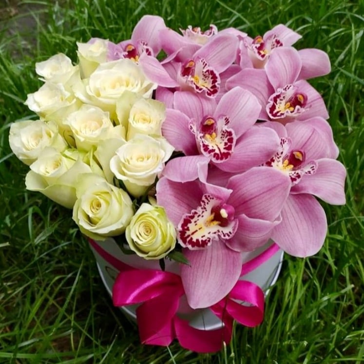 Милый букет из шикарных орхидеи цимбидиум и ароматной нежной белой розы! С любовью оформлен ненавязчиво в коробке и перевязан лентой. Такая композиция будет радовать получателя своей красотой и необычностью! Букет цветов — обязательный презент для любой представительницы прекрасной половины человечества. Цветы – это красивый способ сделать женщину счастливой. Флористы каждый день создают букеты из свежих цветов, чтобы вы могли порадовать ими своих близких и любимых. Наши букеты подходят под любой праздник и торжество: день рождение, юбилей, признание в любви , для мамы и просто так-чтобы поднять настроение и пожелать хорошего дня 🌸