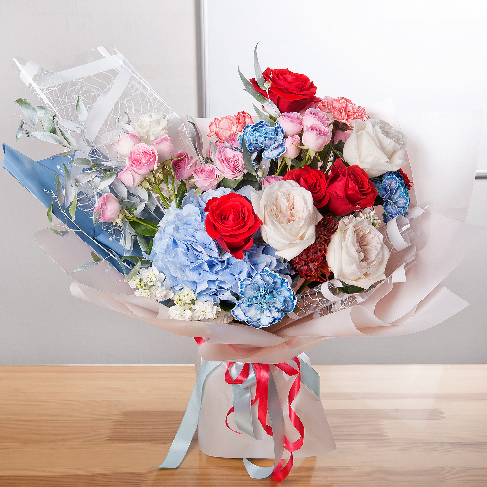 Букет «Сердце Атлантиды» из роз и гвоздик