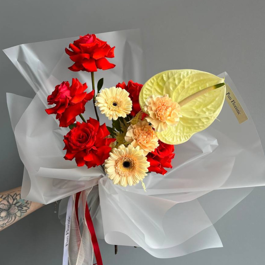 Букет «Неординарность» из роз и гербер