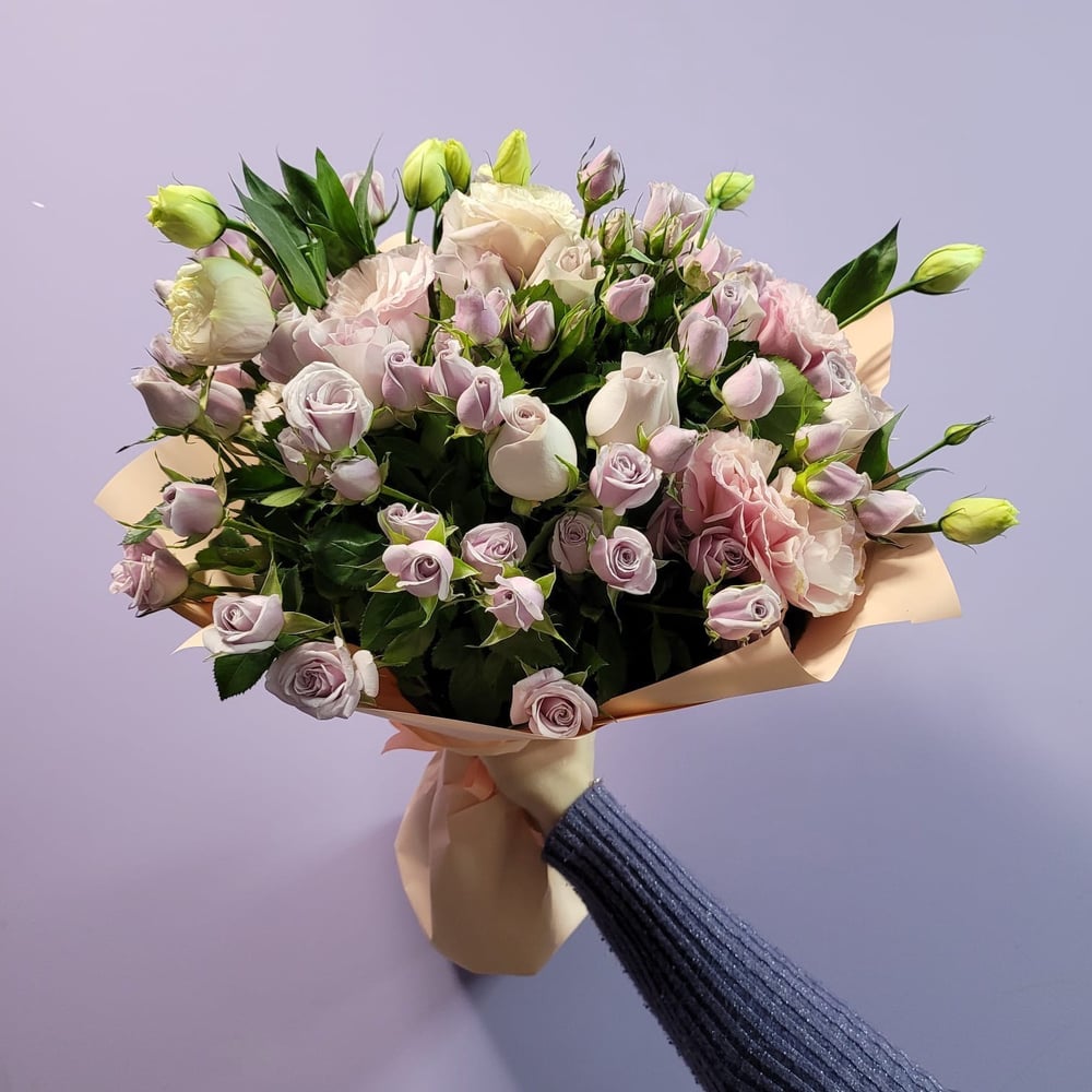 Сочетание роз, кустовых роз и эустом