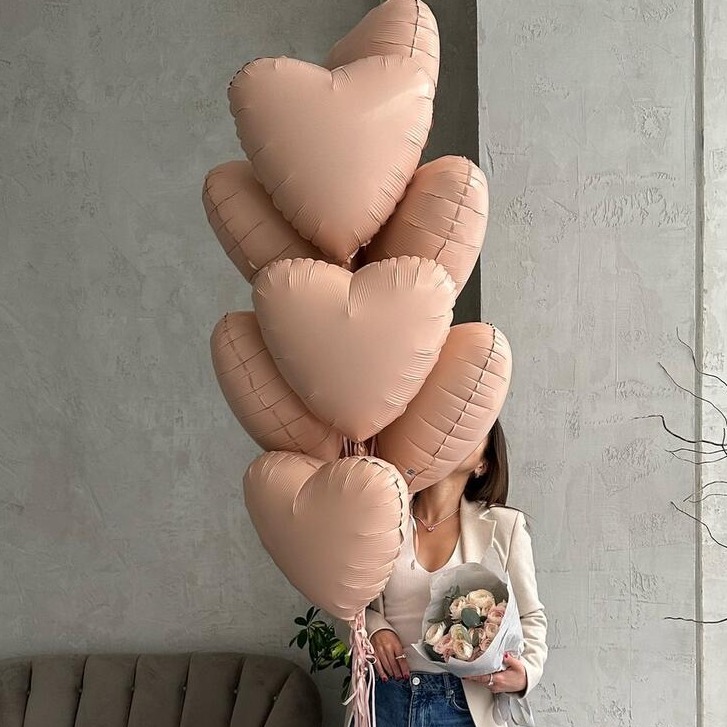 9 шаров в виде сердца и букет цветов. На фото представлен монобукет из ранунклюса. Если на момент заказа данного цветка не будет в наличии, по причине сезонности, мы свяжемся с вами и предложим равноценную и прекрасную замену.