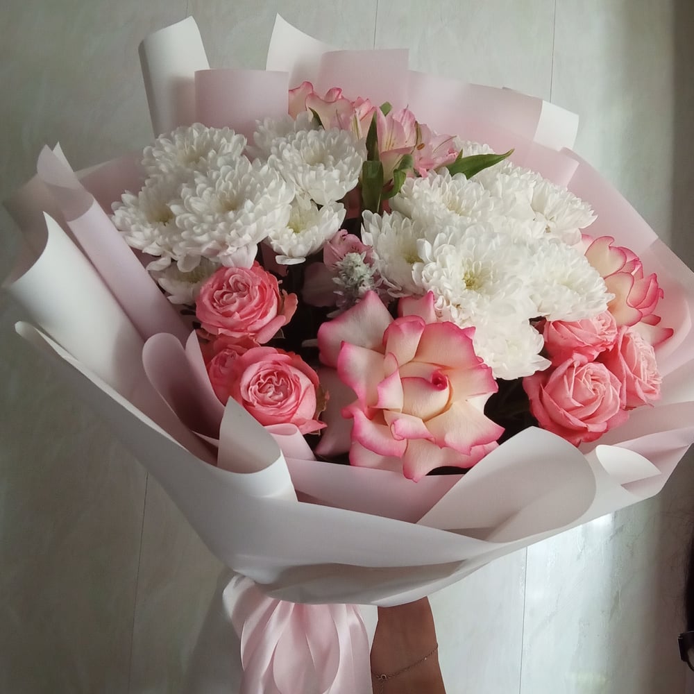 Букет «Незабываемый миг» из роз и хризантем