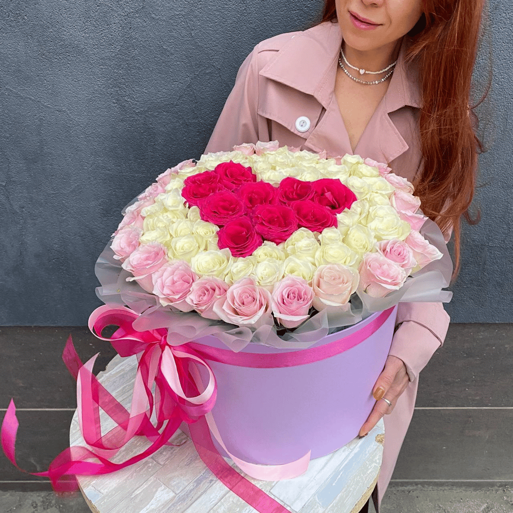 Шляпная коробка с цветами «Нежная любовь» из роз