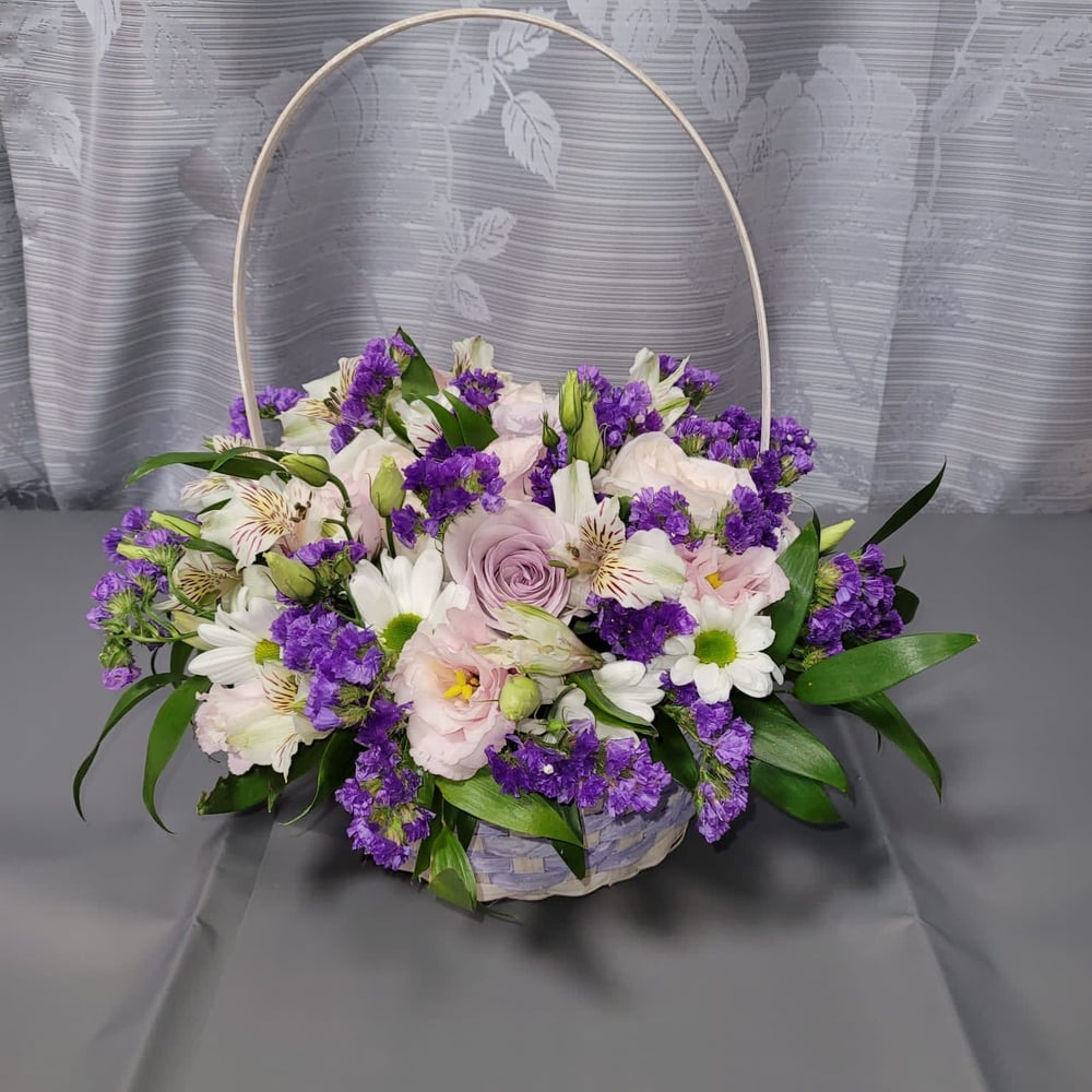 Корзина с цветами «Нежная страсть» из альстромерий и роз