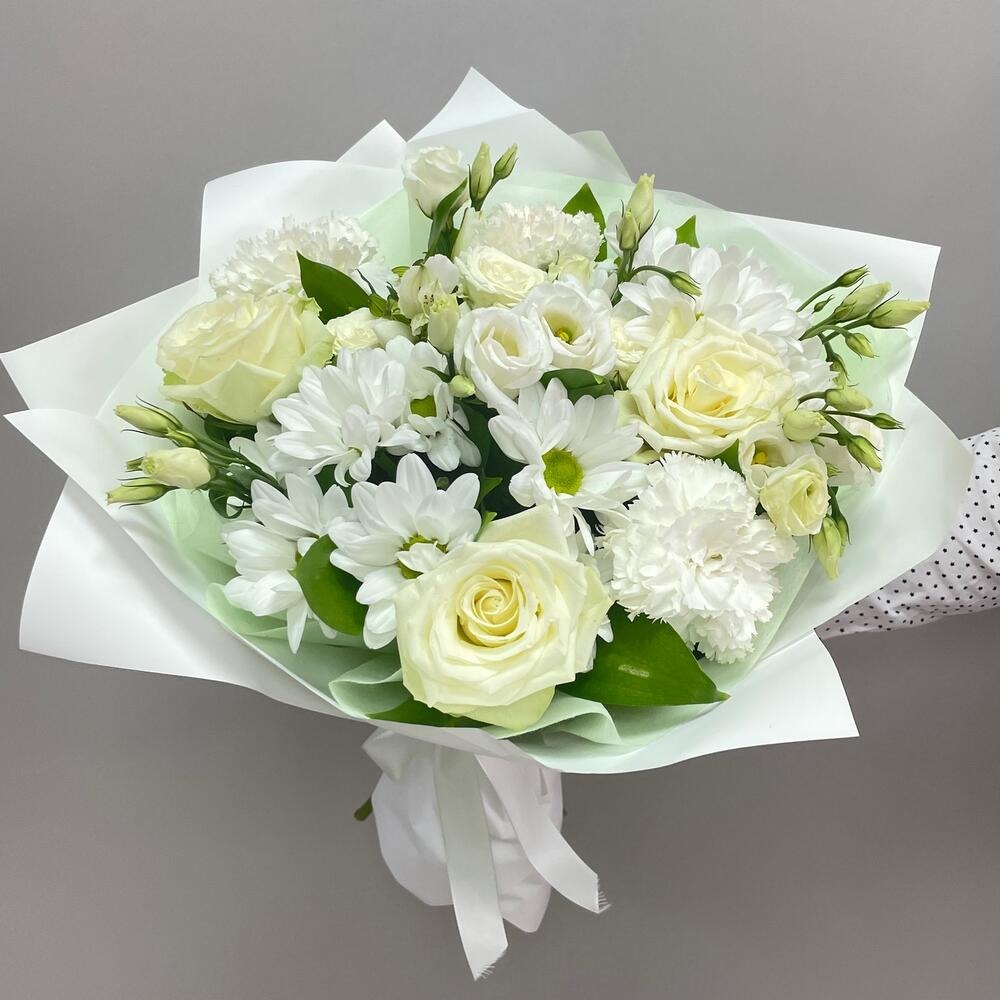 Букет «Нежное белое облако» из роз и гвоздик