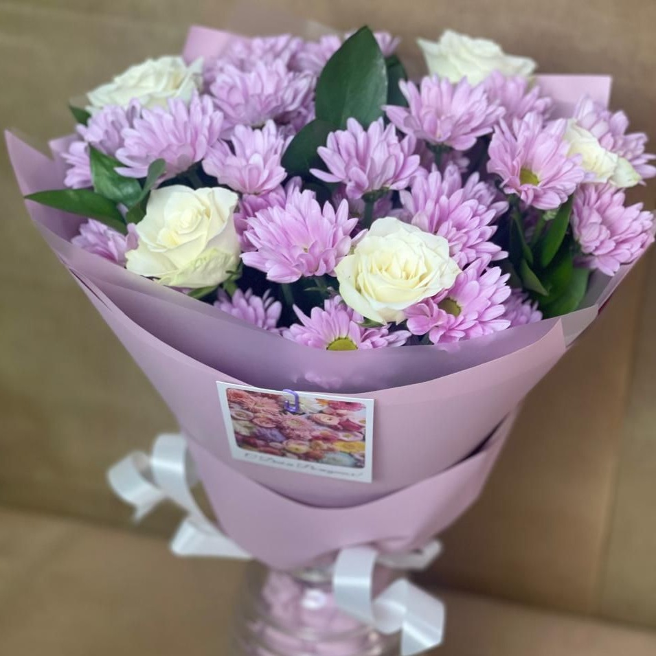 Букет «Нежное утро» из роз и хризантем