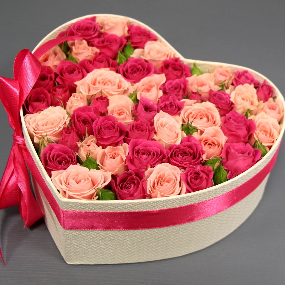 Композиция в коробке в форме сердца, перевязанная бантом. Состав: кустовая роза. При отсутствии некоторых видов и расцветки цветов, компания оставляет за собой право осуществить равноценную замену по согласованию с заказчиком» Каждый букет и композиция может отличаться от исходного варианта, так как каждый букет и композиция уникальны и индивидуальны. Результат будет максимально приближен к образцу.