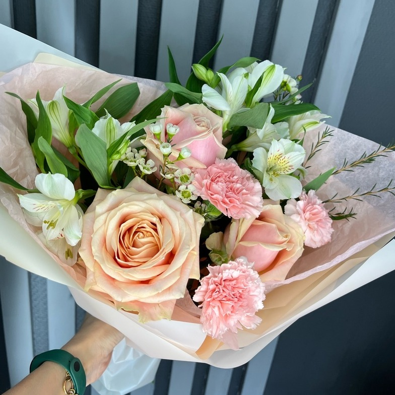 Нежность букета из роз и альстромерий