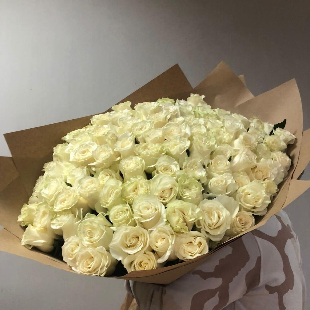 Роза белая 60 см - 101 шт. Крафт упаковка - 1 шт.